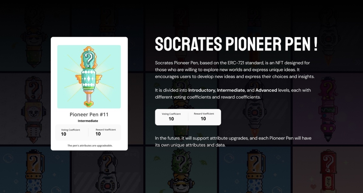 先锋笔的引入意味着 Socrates 全球社区迈向更加动态、更高参与度和奖励体验迈近了一步。通过此次升级,Socrates 重申了其对辩证和讨论的愿景,鼓励全球的奖励思想家、辩手和知识追求者,使其成为一个思辨者的家园。