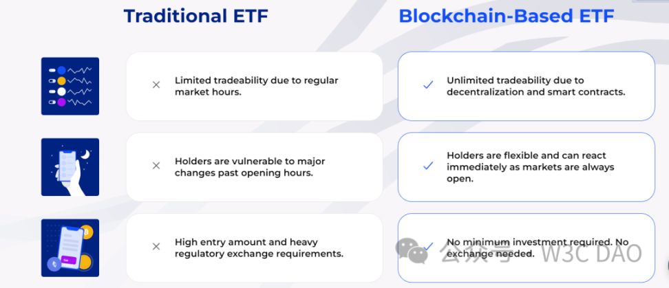 高效:D-ETF 项目利用区块链的技术优势,实现了 D-ETF 产品的快速发行和交易,降低了成本和风险,提高了效率和收益。