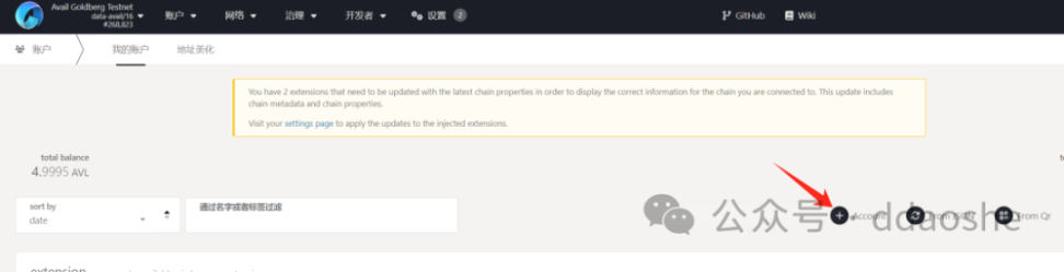 https://chromewebstore.google.com/detail/subwallet-polkadot-wallet/onhogfjeacnfoofkfgppdlbmlmnplgbn?hl=zh-CN&utm_source=ext_sidebar安装 sub 钱包,并将第 1 步创建的钱包地址导入该钱包,然后复制 avail 测试网钱包地址