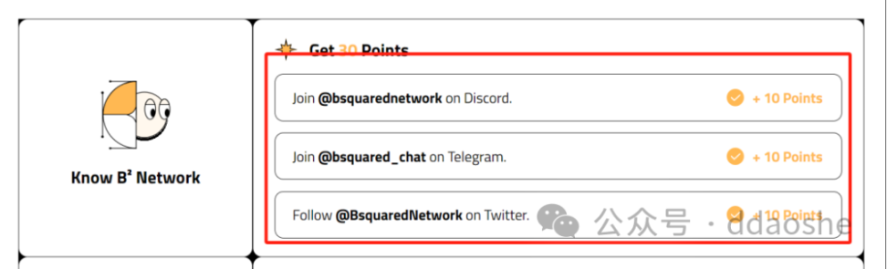 6 完成页面下方简单的三个任务,每完成 1 个任务即可获得 10 积分,任务验证较慢,需耐心等待,然后等待测试网任务开启