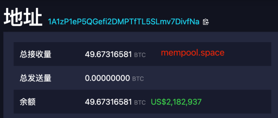 因为交易转账的接收地址是著名的 1A1zP1eP5QGefi2DMPTfTL5SLmv7DivfNa。