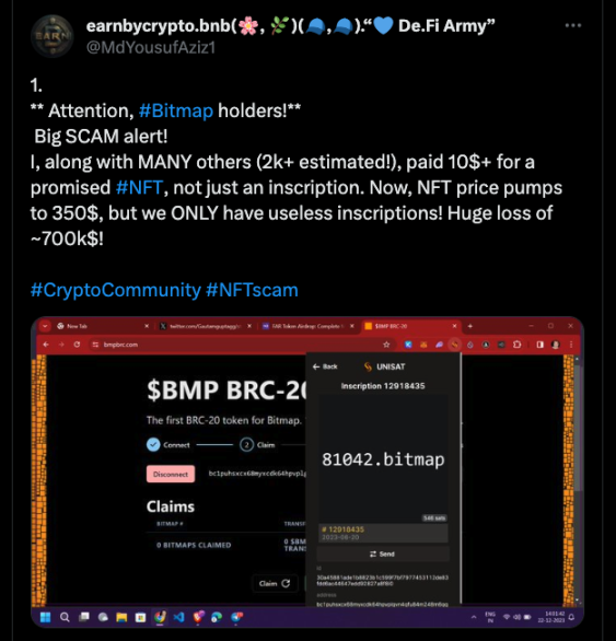 随着铭文这个概念的热度触及到了前所未有的高点,头部铭文价格最高涨幅达到数万倍之多。在此背景下,很多人早已伺机而动,利用铭文的复杂性和新颖性实施各种欺诈行为,并且这种现象日渐猖獗。这些不仅对用户的资产安全构成了严重威胁,也对整个铭文生态的健康发展带来了不利影响。