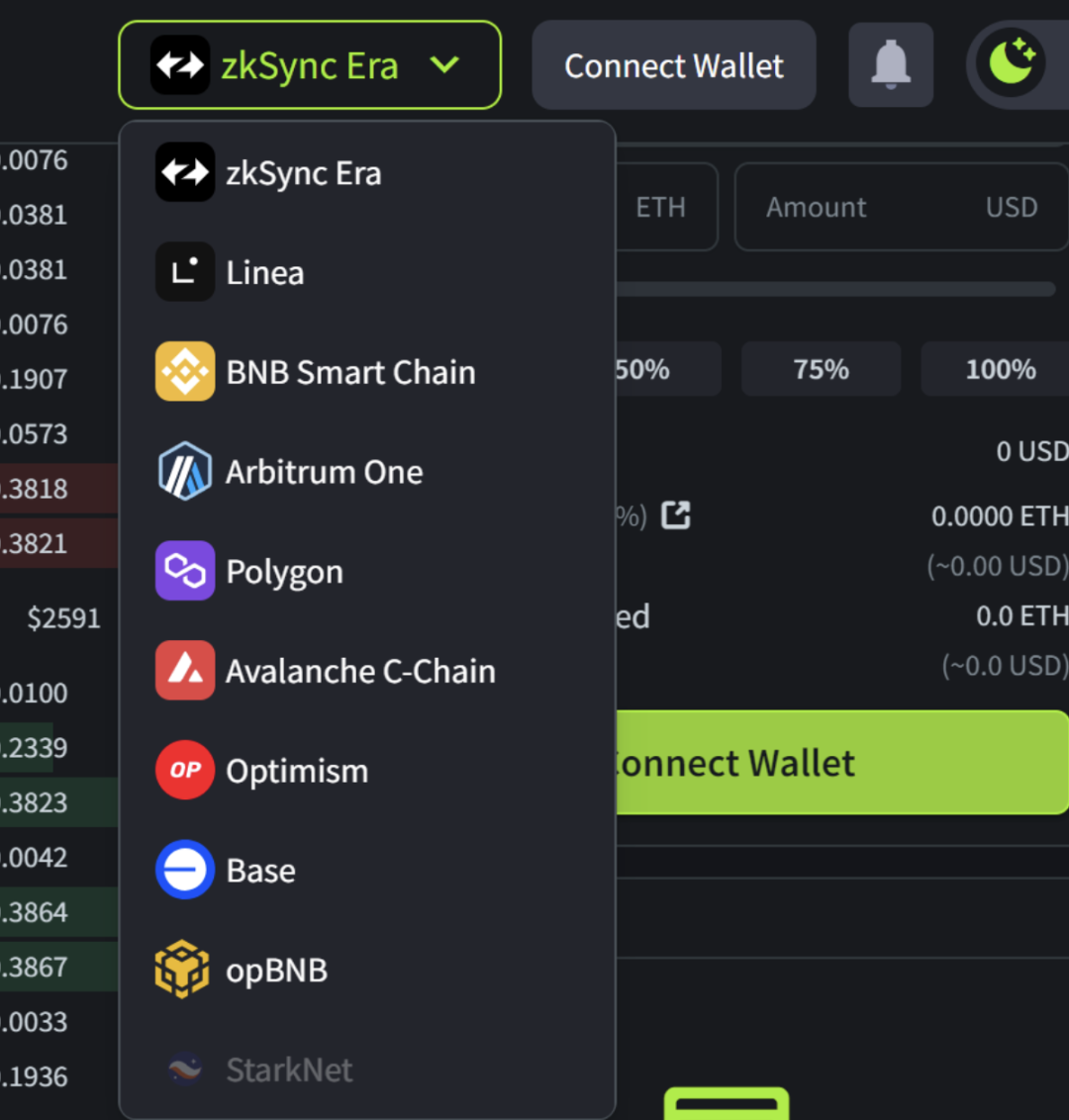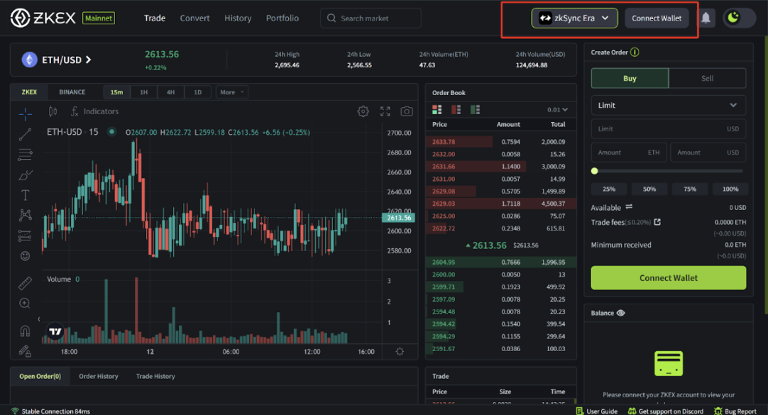 进入 ZKEX.com,连接个人钱包,选择网络 zkSync Era