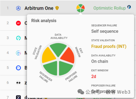 (L2BEAT 上为不同 Layer2 项目设置的「风险要素展示图」)