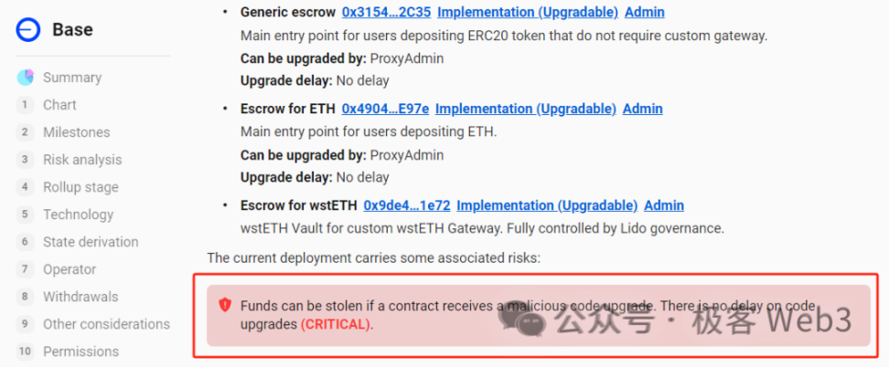 (L2BEAT 上对不同 Layer2 项目的合约升级延时有标注,大多数 L2 合约可以立即被控制者升级,如果合约控制者想盗取资产,或其私钥被黑客盗取,L2 托管的用户资产必定遭殃)