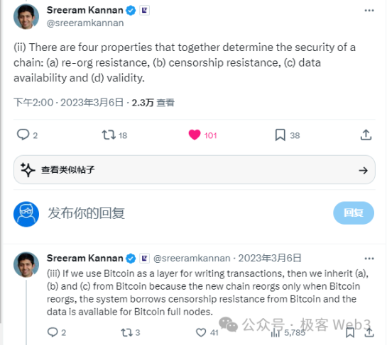 (EigenLayer 创始人曾就客户端验证 / 主权 Rollup 方案如何继承比特币主网安全性一事,表达了看法)