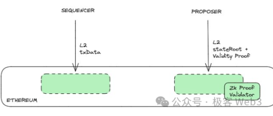 比如,ZK Rollup 的排序器在 Layer1 上发布交易数据后,会触发合约逻辑生成一个 datahash,而验证器合约要确认,Proposer 提交的有效性证明和 datahash 有对应关系。