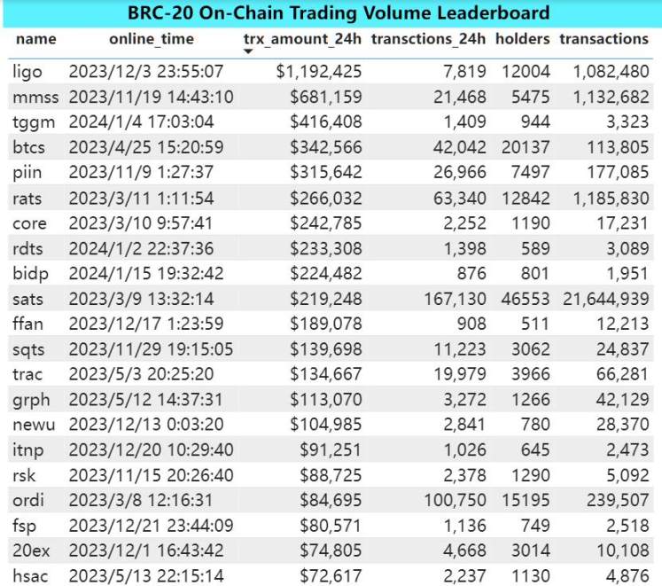 ligo(Token):近期刚完成 mint 的比特币 Layer2 扩容项目,BRC20 代币 LIGO 在二级市场有不错的表现,后续走势需要官产项目研发进度。