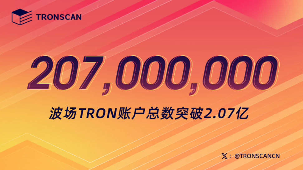 区块链浏览器 TRONSCAN 最新数据显示,截至 2024 年 1 月 17 日,波场 TRON 账户总数达到 207,018,226,正式突破 2.07 亿。