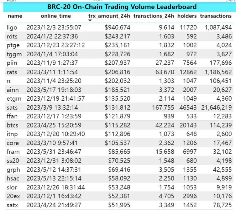 LIGO(Token):比特币 Layer 2 概念的 BRC-20 代币,2023 年 12 月 3 号部署,近期突然 Mint 热度激增,超过 12k holders,目前已完成 mint,BRC20 代币 LIGO 在二级市场有不错的表现,后续走势需要官产项目研发进度。