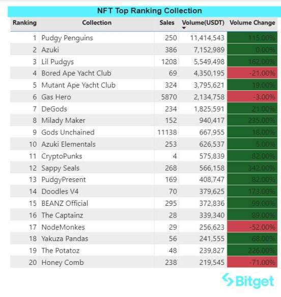 Pudgy Penguins(NFT):胖企鹅项目方与亚洲最大的 IP 之一老夫子合作,庆祝其 60 周年,迎接中国龙年。NFT 地板价突破 18 ETH,单日涨幅达 23%,7 日涨幅达 72.84%。