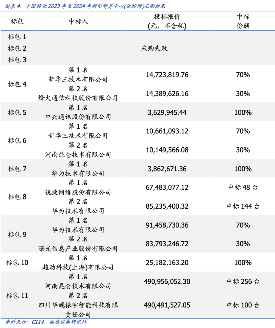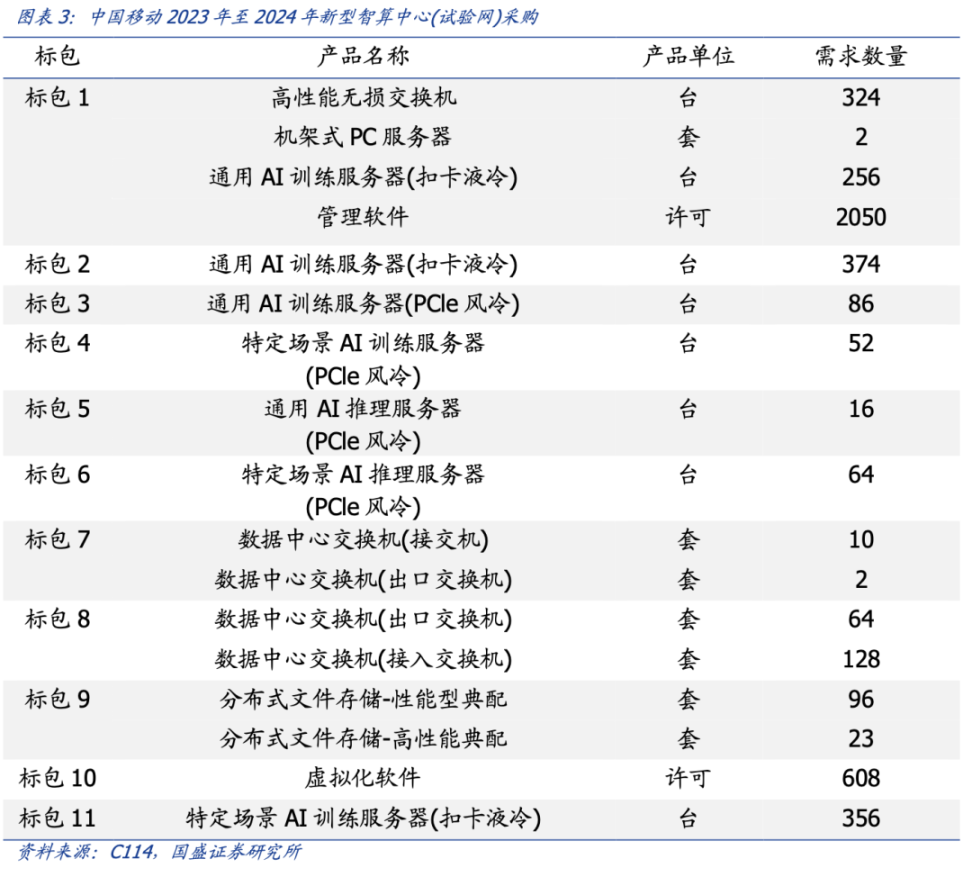 据了解,中国移动此前公开集采了 2023-2024 年新型智算中心(试验网)集采项目标包 1-11。