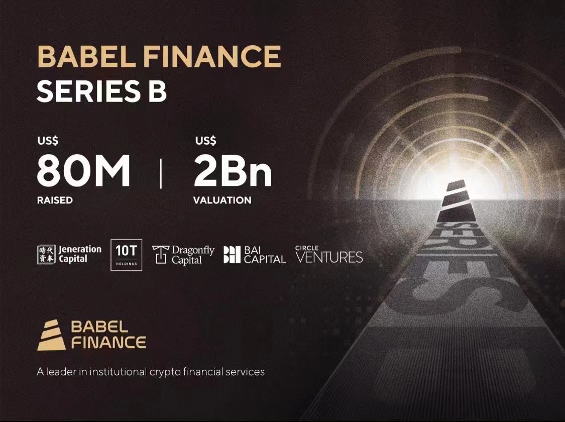 机构级加密金融服务提供商 Babel Finance 宣布完成 B 轮 8000 万美元融资,估值 20 亿美元。此轮投资来自时代资本(Jeneration Capital)、10T Holdings、以及现有股东 Dragonfly Capital 和 BAI 资本等,其他投资者还包括 Circle Ventures 及多个亚太地区的家族办公室。