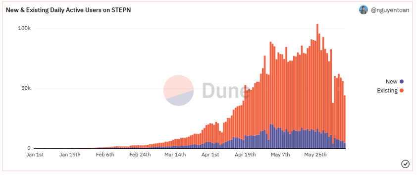 来源:https://dune.com/nguyentoan/STEPN-(GMT-GST)-Core-Metrics
