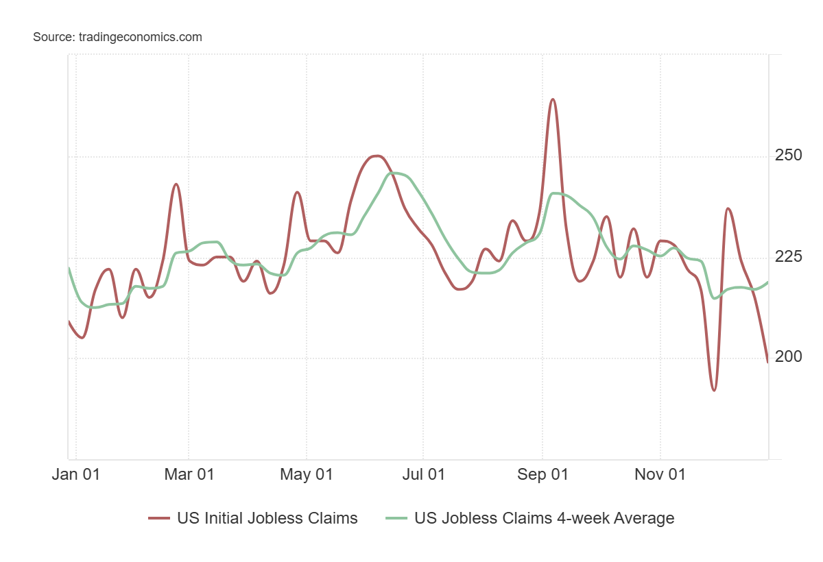 a. 12 月 27 日当周,初请失业金人数为 19.9 万,低于市场预期的 20 万及前值的 21.5 万,该人数为 2025 年 12 月以来的最低值;
