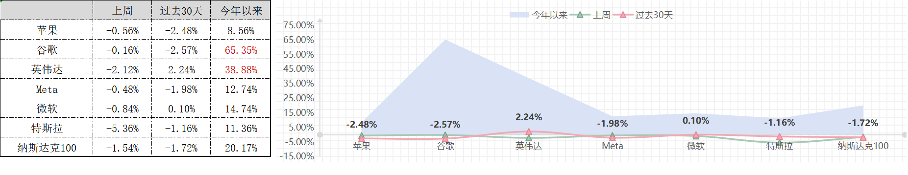 a. 科技股今年以来涨幅高度分化,谷歌与英伟达显著跑赢,AI 算力、云计算及资本开支扩张仍是核心驱动;