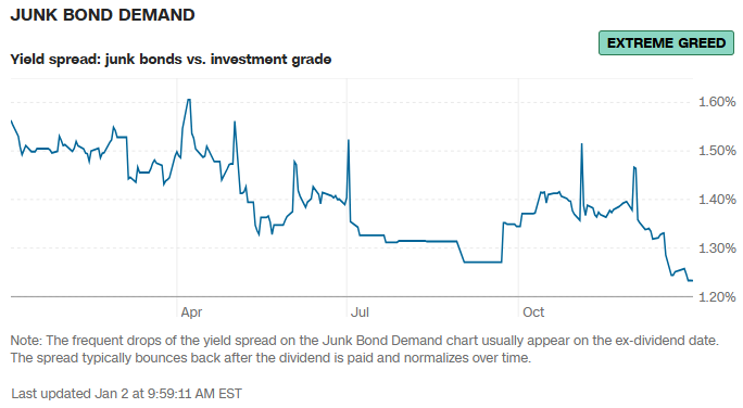 ii. 垃圾债券与投资级债券的 Yield Spread 已降至 1.25% 左右,处于今年以来低位。利差持续收窄反映较为乐观的市场情绪;