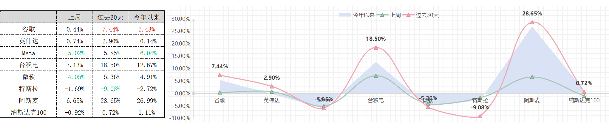 a. 巨头走势分化,受台积电财报超预期的利好影响,半导体硬件涨幅明显由于应用端;