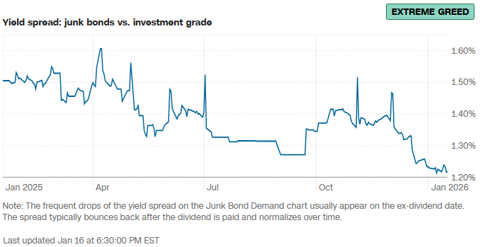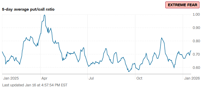 i. CNN 恐惧与贪婪指数迅速脱离年初的“极端恐惧”并上升至“贪婪”,市场已消化前期利空,乐观情绪占据主导;