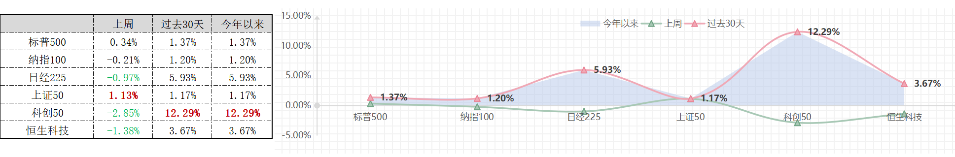 a. 市场风险偏好下降,A 股科技股承压明显,资金对确定性和防御属性的偏好有所提升。标普 500 周中一度触及 7,000 点历史高位,随后受到美联储潜在鹰派路径的压制涨幅收敛;