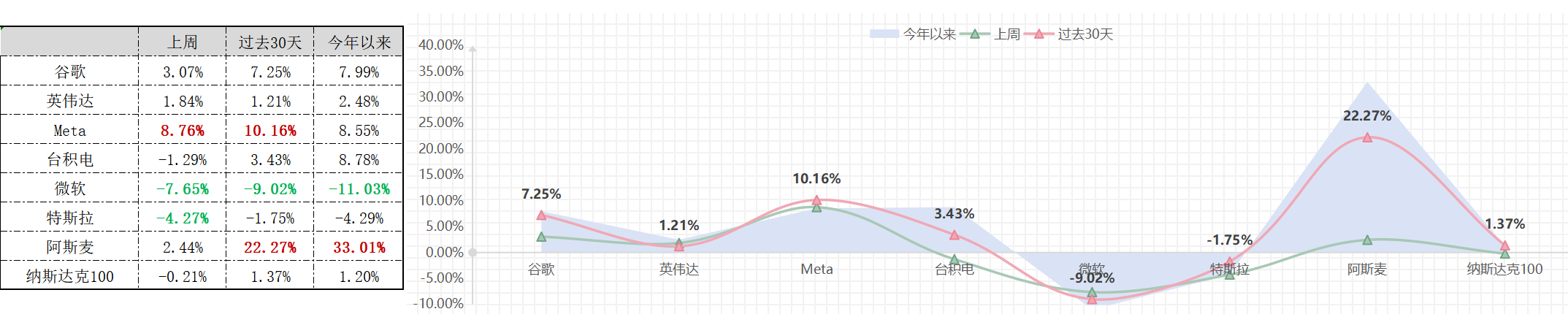 a. 科技股财报走势分化,资本支出大幅增加 + 云业务增速不匹配拖累微软股价。相反,上个季度遭遇市场担忧的 Meta 凭借营收、指引、核心业务增速及资本支出超预期迎来全面反弹;