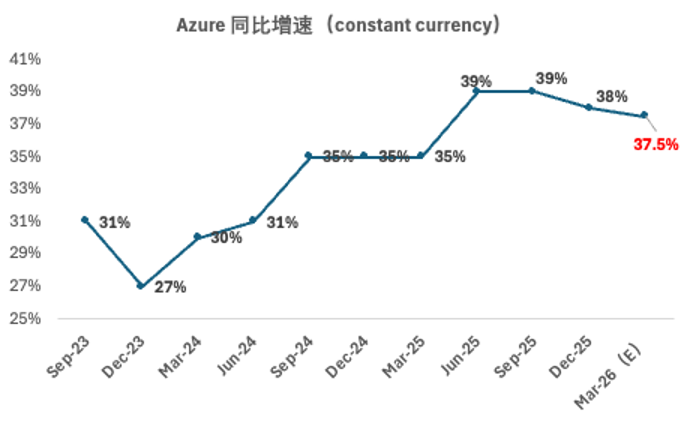 1. Azure 云业务增长放缓 - 营收增长同比为 38%,持平于前值且未来一个季度增速指引为 37% - 38%;
