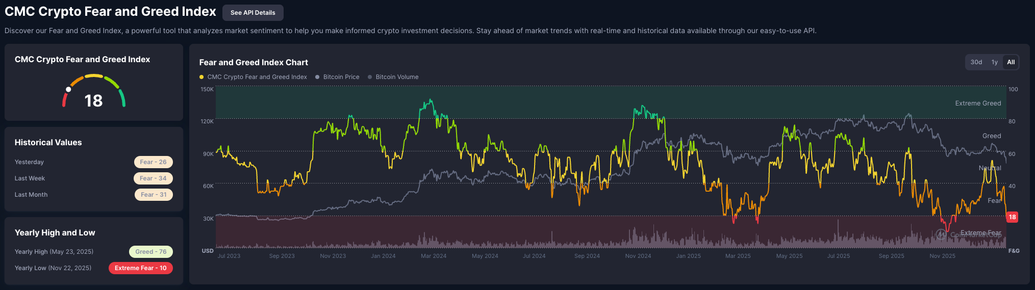 a. 上周暴跌,情绪冲洗回到极度恐慌的区间,市场进入 25 年以来,已经连续四次触及极度恐慌,但市场弹性并没表现出比特币应有的高弹性的属性,市场在变得愈发疲软。