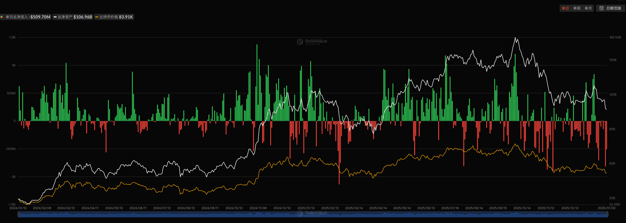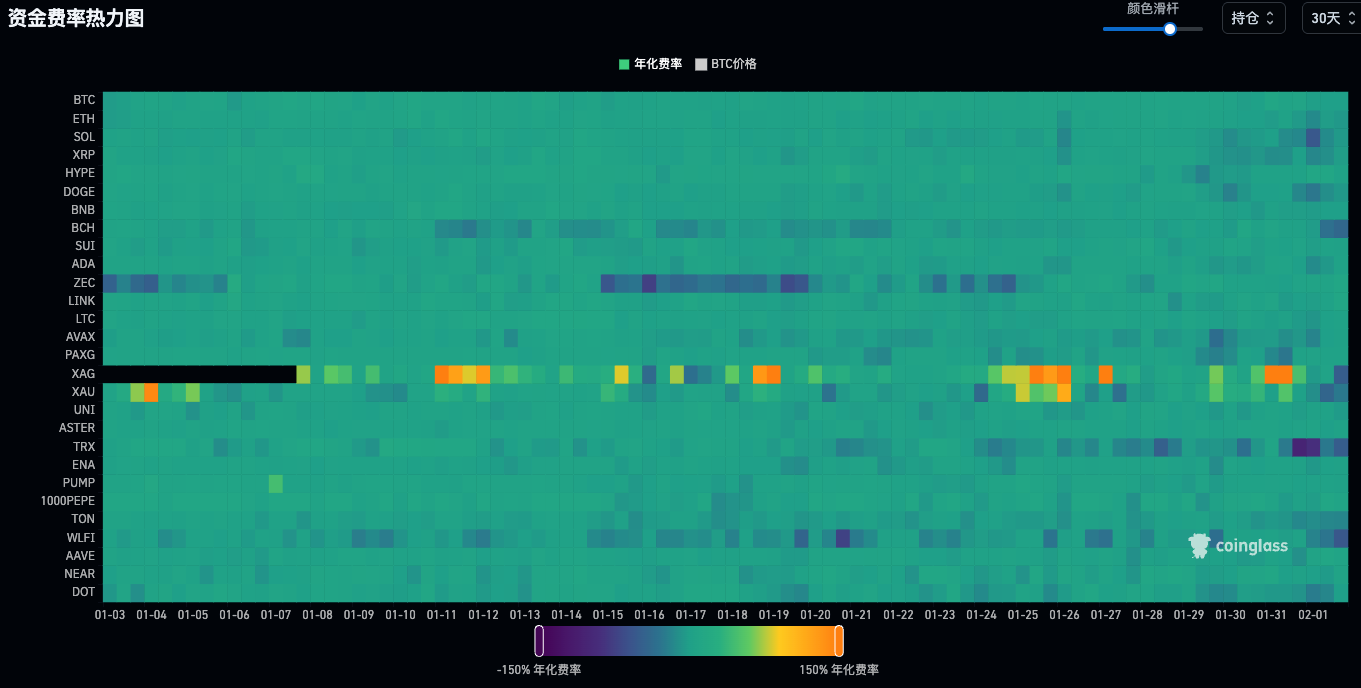 b. 本次下跌起因或许是多重作用的结果,首先是鹰派货币政策代表人物 Kevin Warsh 被提名为下一任联储主席,市场对其产生的预期反应,同时还有周五有色金属的暴跌,导致机构需要变卖资产补充保证金,值得注意的是,BTC 对金价的汇率当前已经来到了历史低点;同时还有地缘政治等因素,多重因素传导到了加密市场,导致目前处在风险资产食物链最底端的加密市场遭到沉重打击,ETF 在上周也是连续五天流出,本次市场再次去杠杆的行为,可能导致市场未来较长一段时间的萎靡不振。