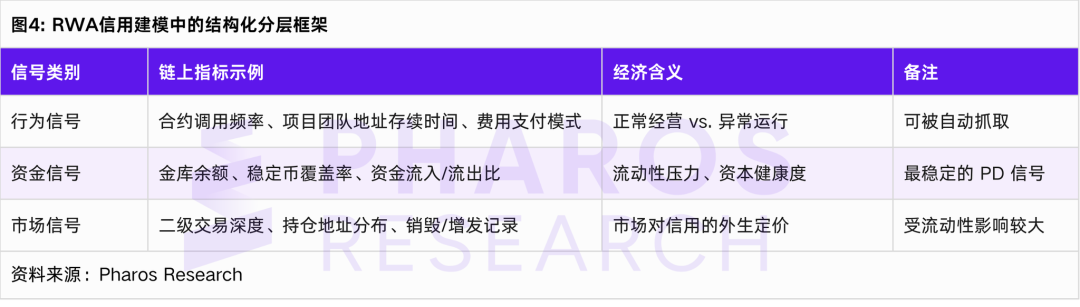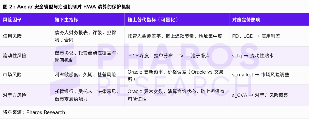 为了构建完整的定价与监控体系,本文使用四类核心风险因子:信用风险、流动性风险、市场风险、对手方风险。每类风险因子均包含链下主指标与链上替代指标。