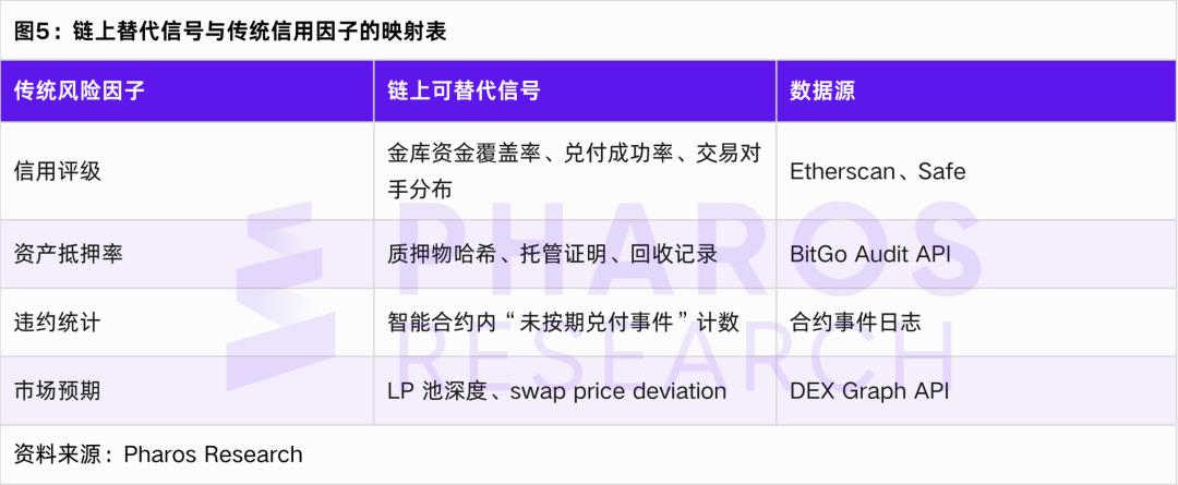 传统信用模型(如 Basel)在链上需解决缺乏财报、缺乏监管评级、缺乏抵押物监管三大缺陷。因此,本文构建链上替代指标—信用变量映射体系。