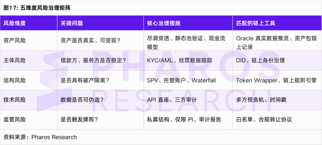 • Q3/Q4 类资产需要较强法律结构(SPV 与托管)与较高风险准备金。
