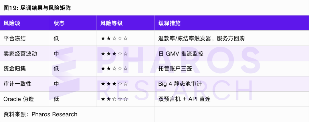 • 使用 12 个月静态池验证坏账率,当前坏账历史 <0.3%,退款率 1.8%–2.3%。