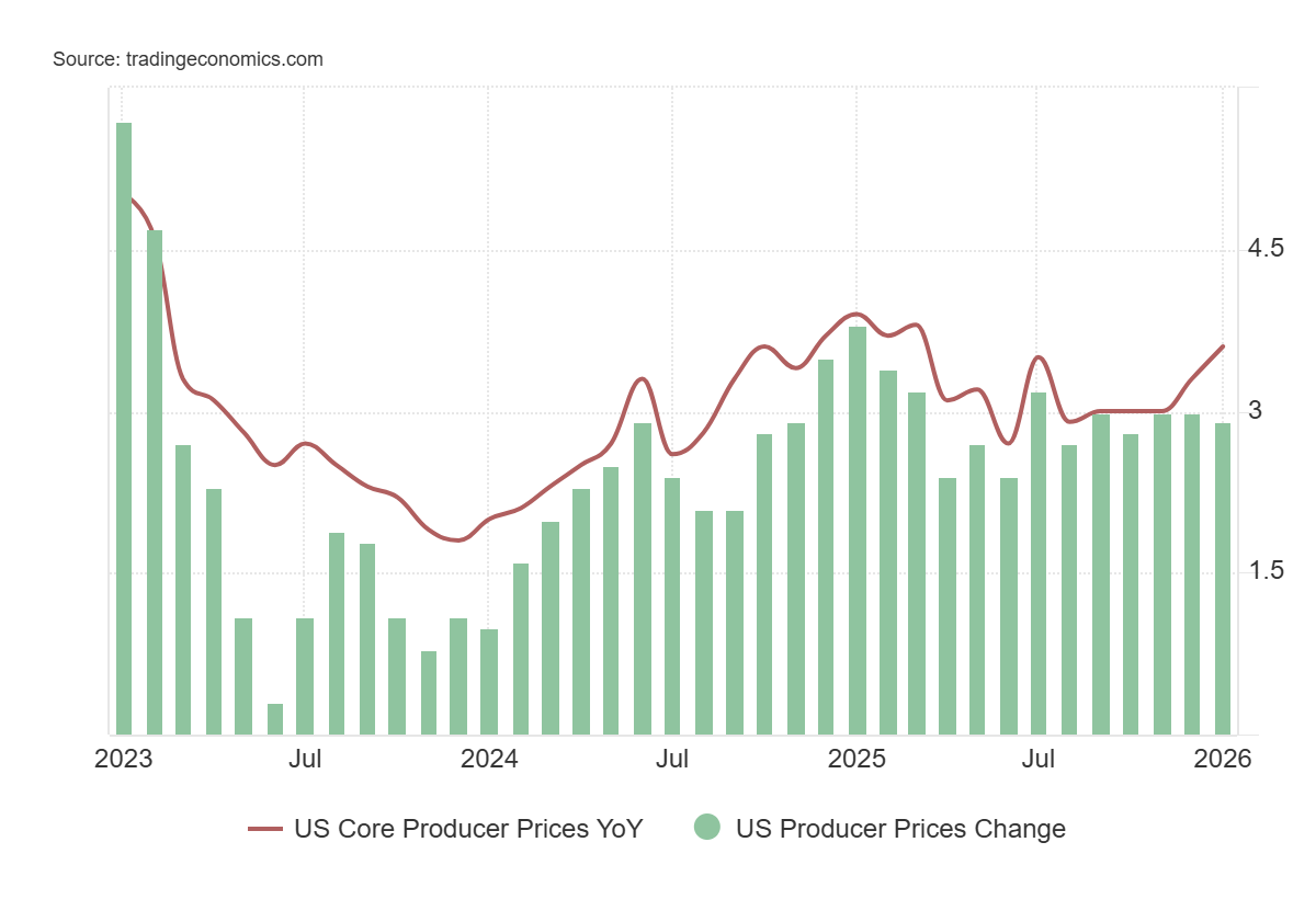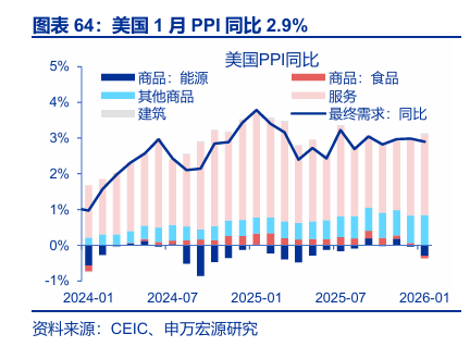a. 1 月 PPI 同比上涨 2.9%,尽管低于前值的 3% 但大幅高于市场预期的 2.6%。同时,核心 PPI同比上涨 3.6%,大幅高于市场预期的 3% 及前值的 3.3%,创近一年新高;