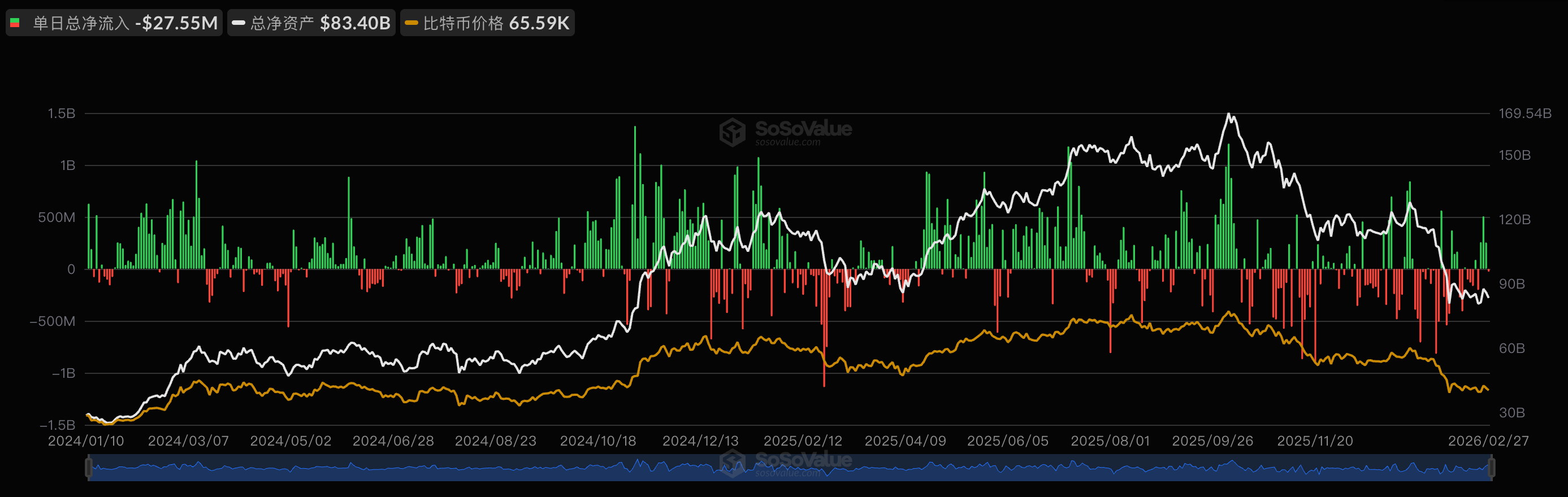 a. 上周市场净流入 7.87 亿美元,结束了长达五周的连续净流出的势头,本周净流入最多的比特币现货 ETF 为贝莱德(BlackRock)ETF IBIT,周度净流入为 5.03 亿美元,目前 IBIT 历史总净流入达 618.10 亿美元,比特币现货 ETF 总资产净值为 834.00 亿美元,ETF 净资产比率达 6.36%,历史累计净流入已达 548.00 亿美元,距离最高值 2025/10/09 的 627 亿美元回撤 12.66%,历史最大回撤 14.28%,实际资金流出并不严重。