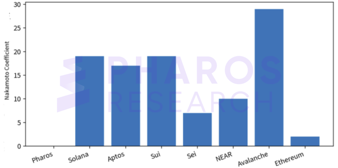 图 4:Nakamoto 系数对比(Pharos=0 表示未披露 / 未上线)