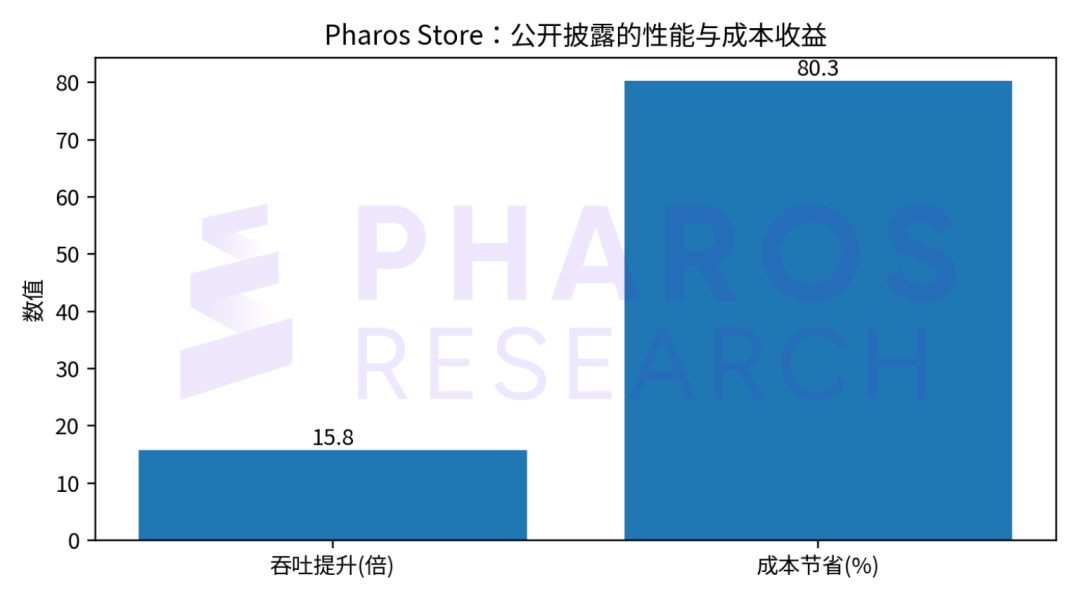 存储与数据成本常是高性能链的长期瓶颈。Pharos Store 的思路是把部分传统由外部数据库承担的工作下推到存储层本身(ADS/pushdown),从而在吞吐与成本之间争取更好的全局最优。官方文档披露:在特定评测中,相比传统两层架构可实现 15.8× 吞吐提升,并节省 80.3% 成本。[3] 这类指标对机构更可感知,因为它直指长期运营费用。