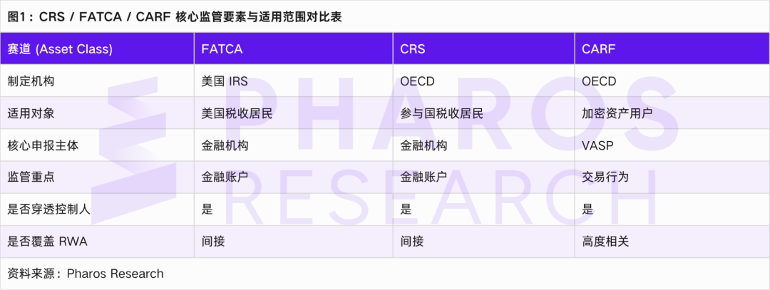 在多数市场讨论中,CRS、FATCA 与 CARF 经常被理解为三套彼此独立的合规体系,甚至被简化为“不同项目对应不同规则”的关系。但从 RWA 项目的实际运行结构来看,这种理解很难成立。三套规则之所以在 RWA 中呈现出明显的叠加效应,并不是因为监管刻意扩大适用范围,而是因为它们分别针对不同对象、不同经济行为与不同信息节点建立监管逻辑。当这些维度在同一项目中同时存在时,规则自然会同时触发。