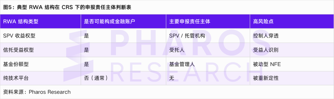 在实践中,CRS 往往是最早、也是最容易被触发的一套规则。其原因并不在于 RWA 项目主动申报,而在于其往往依附于已经纳入 CRS 体系的银行、信托、基金或托管机构。