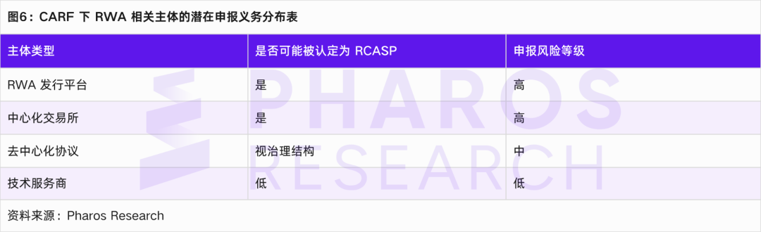 这一变化对 RWA 平台与交易所的影响尤为明显。很多 RWA 项目在早期设计时,将自身定位为技术平台或资产数字化服务商,而不是传统意义上的金融机构。然而在新的税务信息交换体系中,只要平台在实际运营中承担了交易撮合、资产托管或资金流转的功能,就可能被视为类似金融机构的报告主体。举例来说,如果某平台允许投资者在链上买卖房地产收益权 Token,并负责记录账户余额或交易历史,那么从 CARF 的视角看,该平台很可能被视为需要履行信息报告义务的加密资产服务提供商。