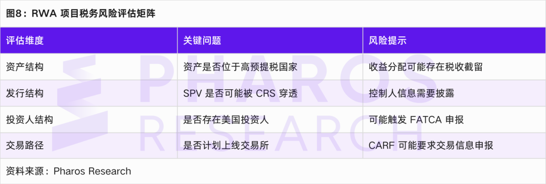 第三个经常被忽视的维度,是信息产生与留存的节点。CRS 与 FATCA 的传统申报体系主要依赖金融机构节点,例如银行、托管机构或基金管理人,由这些机构负责识别账户持有人身份并完成信息报送。而在加密资产领域,信息节点正在发生结构性变化:交易平台、托管钱包服务商、稳定币发行方甚至某些链上服务提供者,都可能成为监管识别交易信息的重要入口。CARF 的制度设计正是建立在这一现实基础之上,它要求能够接触用户交易信息的加密资产服务提供者承担申报责任。对于 RWA 项目而言,其信息节点往往同时覆盖传统金融体系与加密资产体系:底层资产收益可能通过银行系统结算,Token 的发行与赎回可能由项目平台或托管机构处理,而二级市场交易则发生在加密资产交易所或链上协议中。不同节点掌握不同类型的信息,使得监管可以从多个渠道还原完整交易路径。