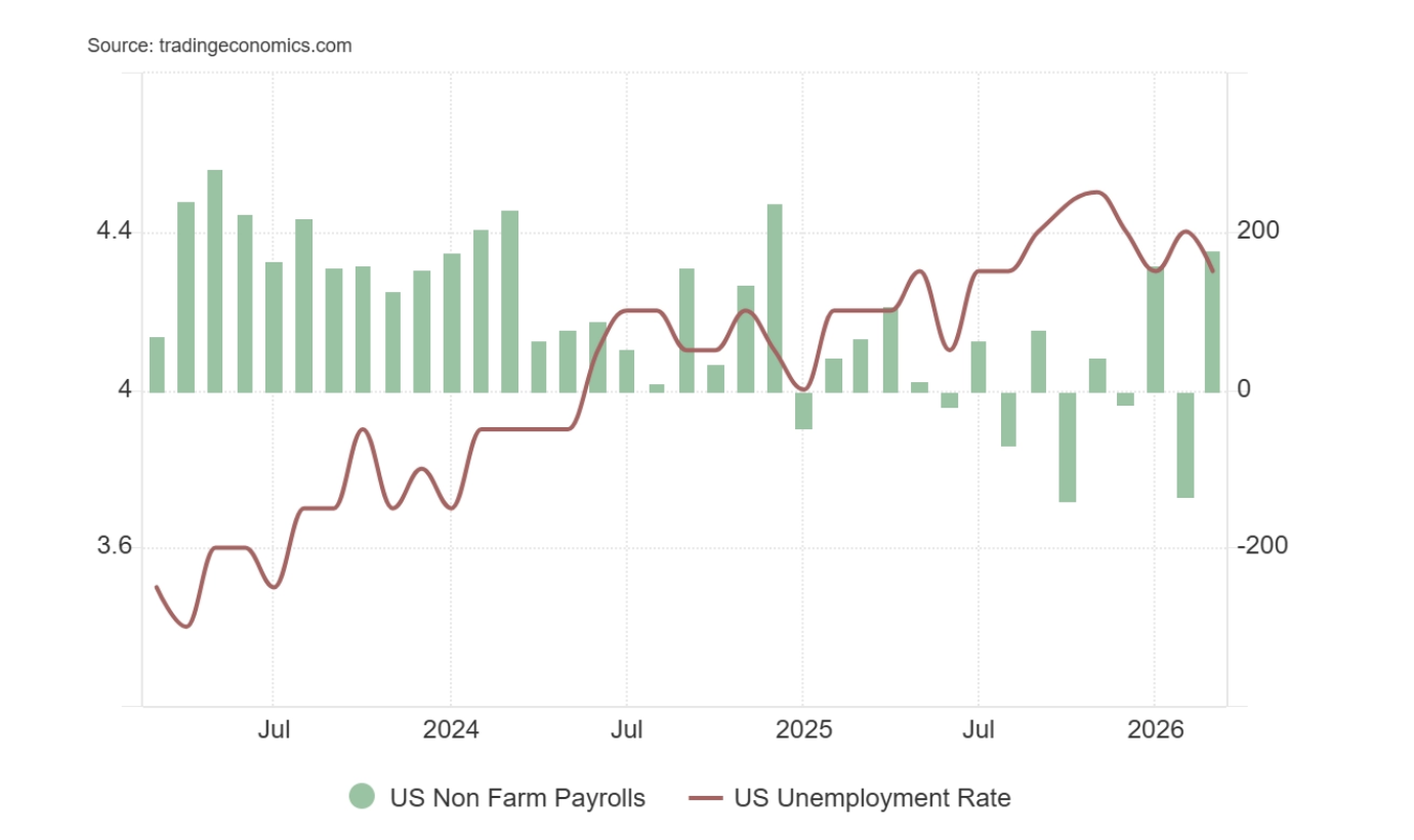 a. 3 月非农就业人口新增 17.8 万,大幅高于预测的 6.5 万及前值的 -13.3 万,为 2024 年 12 月以来最大增幅。同时,失业率为 4.3%,低于前值及预期的 4.4%;
