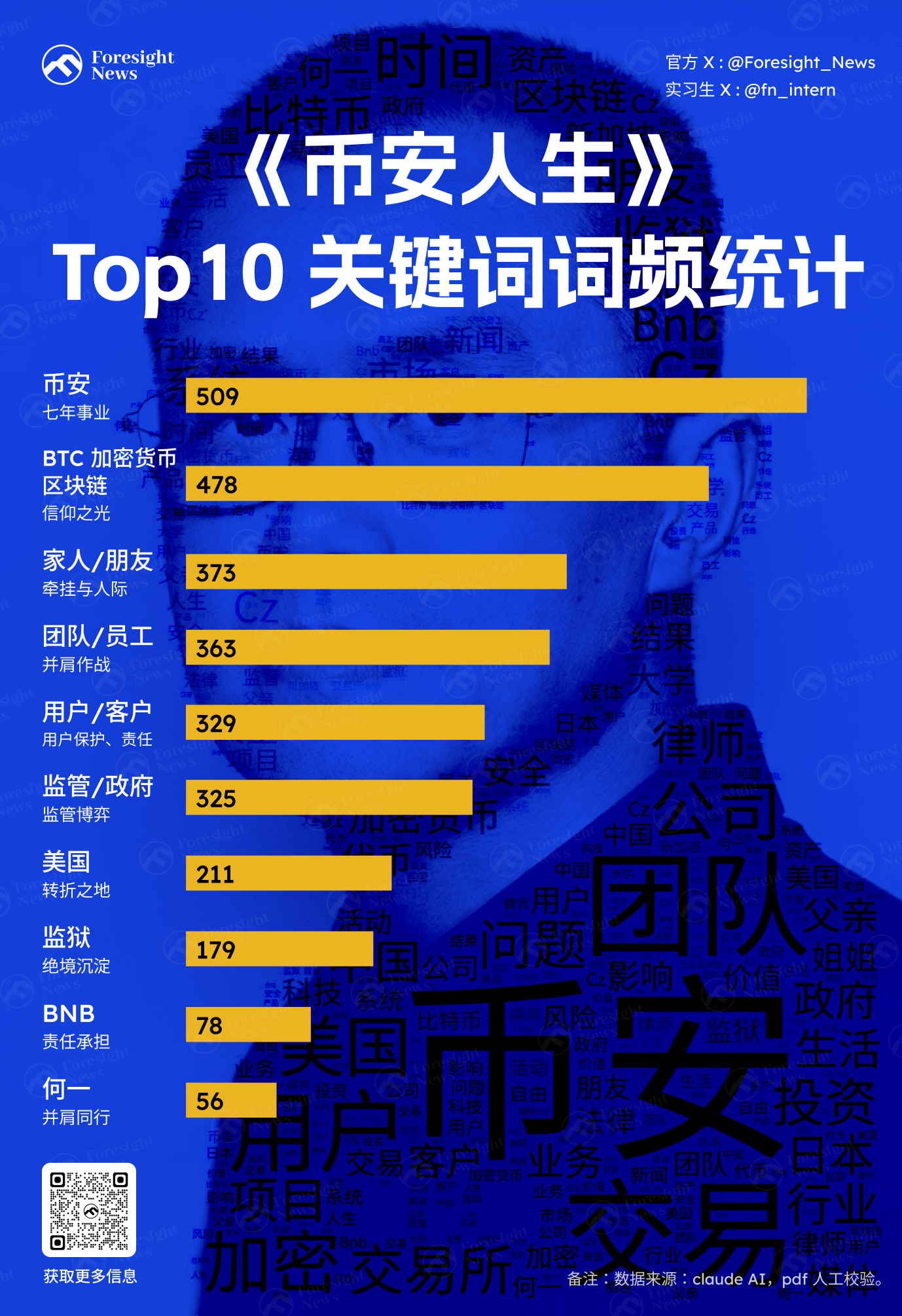 比特币、BTC、加密货币、区块链,这个大类共出现 478 次,从 2013 年那个改变 CZ 人生轨迹的牌局,一直延伸到 2025 年获赦。