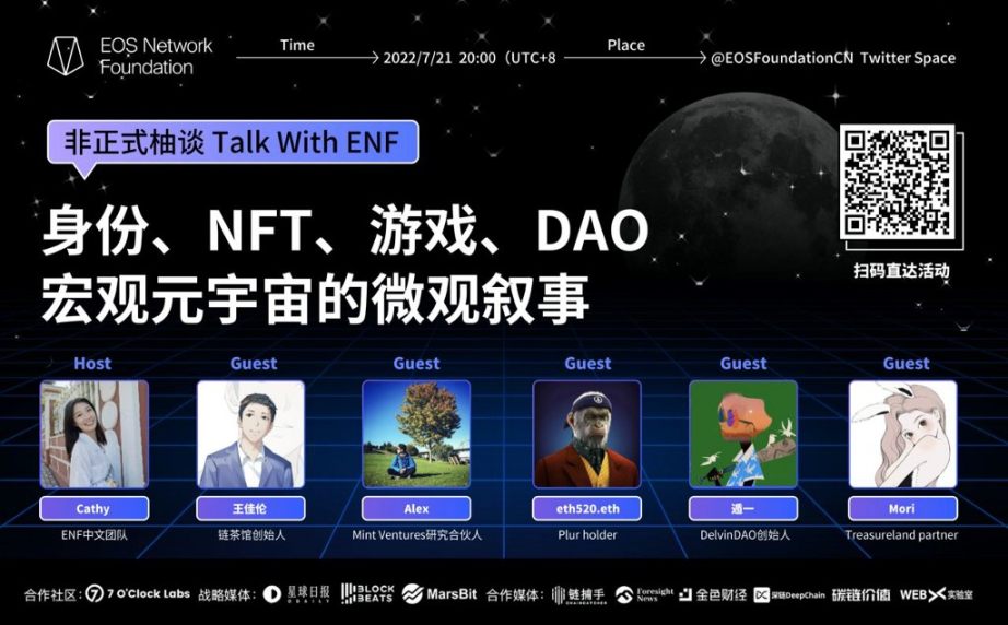 2022 年 7 月 21 日 20:00,EOS 网络基金会最新一期非正式柚谈栏目开播,本期活动围绕「元宇宙」话题展开。